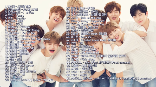 2018 인기곡 모음! 어떤 노래가 생각나나요? :) 1. 아이콘 - 사랑을 했다 2. 방탄소년단 - FAKE LOVE 3. 방탄소년단 - I’m Fine 4. 엑소 - Tempo 5. 엑소 - Gravity 6. 아이유 - 삐삐 7. 제니 - SOLO 8. 블랙핑크 - 뚜두뚜두 9. 블랙핑크 - Forever Young 10. 트와이스 - Yes or Yes 11. 트와이스 - What is Love? 12. 트와이스 - Dance The Night Away 13. 청하 - Roller Coaster 14. 레드벨벳 - Bad Boy 15. 레드벨벳 - Power Up 16. 워너원 - 봄바람 17. 워너원 - 불꽃놀이 18. 워너원 - 집 19. 빅뱅 - 꽃길 20. 볼빨간사춘기 - 여행 21. 마마무 - Wind flower 22. 마마무 - 너나 해 23. 마마무 - 별이 빛나는 밤 24. 여자친구 - 밤 25. 벤 - 열애중 26. 백현 (BAEKHYUN) & 로꼬 - YOUNG 27. 로꼬 & 화사 - 주지마 28. 더 이스트라이트 - 설레임 29. 더 이스트라이트 - 발렌타인 데이 30. KARD - Ride on the wind 31. Tiffany Young - Peppermint 32. Tiffany Young - Teach You 33. 폴킴 - 모든 날, 모든 순간 34. 크러쉬 - 잊을만하면 35. 이문세 - 희미해서 (feat. 헤이즈) 36. 조규찬 - Deja Vu 37. 이소라 - October Lover (feat. 로이킴) 38. 오왠 - 그림 39. 선미 - 사이렌(Siren) 40. 로이킴 - 우리 그만하자 41. 로이킴 - 그때 헤어지면 돼 42. 임창정 - 하루도 그대를 사랑하지 않은 적이 없었다 43. KEVIN - Ride Along 44. MRSHLL - alien (Feat. EPTEND) (Prod. sesame) 45. 나윤권 - 10분 거리인데 46. APRIL - 예쁜게 죄 47. W24 - Love Me 48. W24 - 소심해 49. MRSHLL,민(Min) - rull it out (Feat. Ugly Duck) (Prod. Doomsday)