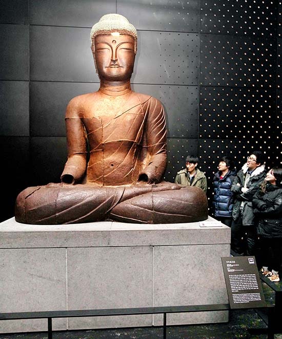 하지만 이 매머드 전시회에서 이들 문화재를 제쳐두고 정작 현지인들 시선을 집중시킨 것은 따로 있었다. 바로 충남 서산 보원사 터에서 수습해 국립중앙박물관이 소장하고 있는 철조여래좌상이었다. 보원사 철조여래좌상으로 주로 불린다. 드물게 쇠로 만들어진 이 불상은 국보도 보물도 아니어서 더더욱 관심을 끌었다.