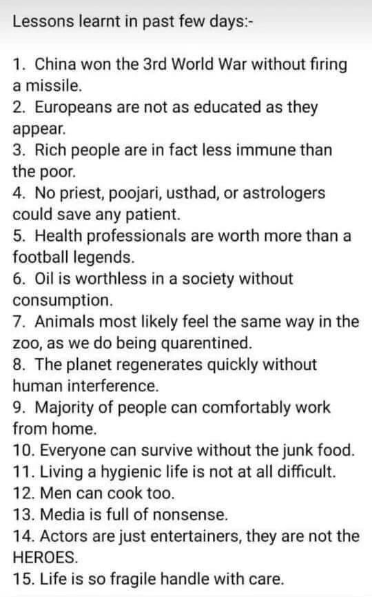 코로나로 배운 사실들