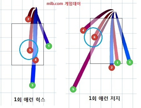 다음 애런 힉스 때도 비슷한 패턴이다. 커브와 체인지업으로 카운트를 잡아나갔다. 그러나 정작 결정구는 빠른 볼이었다. 91마일짜리가 존 한복판을 통과했다. 자칫하면 실투였다. 하지만 배트는 따라가지 못했다.